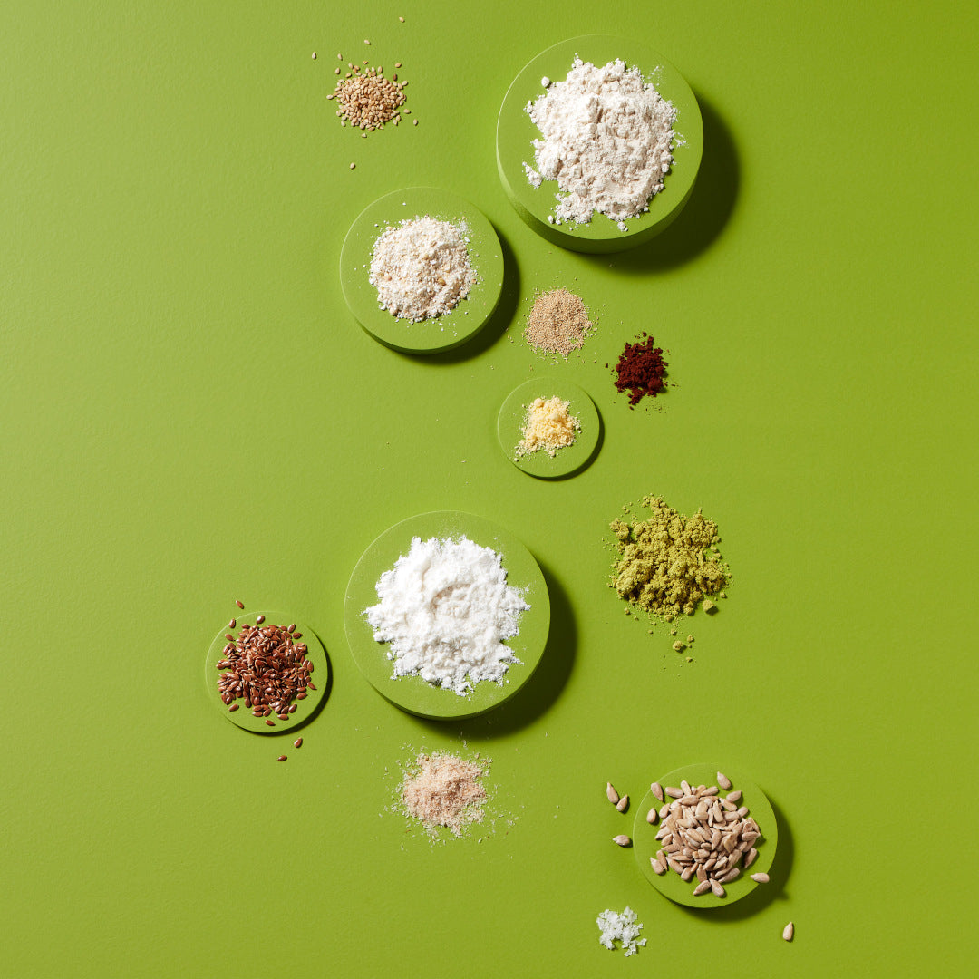 Dieses Rezeptvereint nährstoffreiche Zutaten wie Buchweizenmehl und Reismehl, die eine glutenfreie Basis mit leicht nussigen Aromen aus Sonnenblumenkerne, Leinsaat und Sesam kombiniert. Kürbiskernmehl und Flohsamenschalenpulver gewährleisten die Bindung im Teig und das fettarme Kakaopulver rundet den Geschmack mit einer dezenten, aromatischen Tiefe ab.